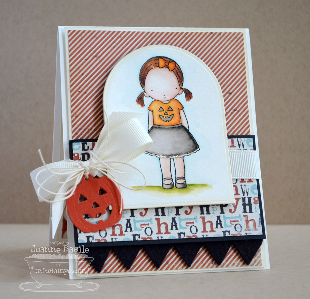 Joanne, the pumpkin charm is just perfect! At first I was confused by the tiny jack-o-lantern face, but now I get it -- I'm just a goof sometimes! Her outfit is cute and the card is wonderful!